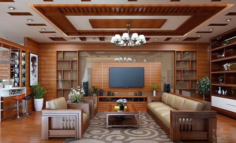 Sang trong boi phong khach noi that go tu nhien